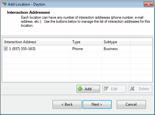 Cliquez sur Ajouter pour ajouter une autre adresse d'interaction à cet emplacement.