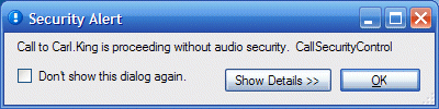 Une boîte de dialogue Alerte de sécurité peut également vous alerter en signalant que l'appel précédemment sécurisé n'est plus sécurisé.