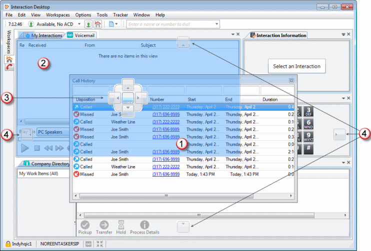En utilisant une architecture d'ancrage flexible, vous pouvez organiser les vues dans l'interface d'Interaction Desktop et les placer dans des emplacements plus pratiques pour répondre à vos besoins. Cette fonctionnalité est utile si vous devez gérer plusieurs vues, telles que des vues d'ensemble de groupes de travail, au sein d'un groupe de travail.