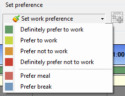 Remarque : les préférences ne sont pas appliquées aux jours sans contrainte de période de travail lorsque vous appliquez des préférences à tous les jours.