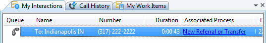 Le nom du processus sélectionné apparaît également sur la ligne contenant l'interaction associée dans Mes interactions. Cliquez sur ce lien pour afficher la boîte de dialogue Détails du processus.