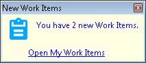 Quand un nouvel élément de travail apparaît dans la vue Mes éléments de travail, la vue apparaît à l'avant-plan si elle était derrière une autre vue.
