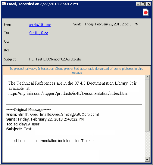 Remarque : les enregistrements de courts extraits d'interactions par email ne sont disponibles que si votre administrateur CIC a activé séparément cette fonctionnalité. Les enregistrements de courts extraits d'interactions par email ne sont pas disponibles par défaut.