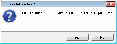 Résultat : l'appel transféré disparaît de la file d'attente Mes interactions ou d'une autre file d'attente, et est acheminé vers le profil Interaction Attendant sélectionné, dans lequel il est traité comme n'importe quel autre appel acheminé vers ce profil Attendant.