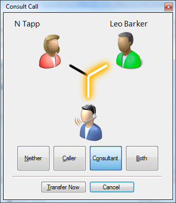Si le destinataire voulu (Consultant) répond à son téléphone et accepte le transfert, cliquez sur Transférer maintenant.
