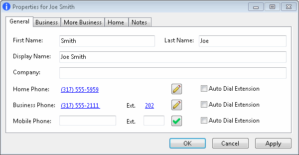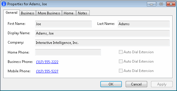 Remarque : toutes les modifications apportées aux entrées d'annuaire de contacts privés Outlook du client CIC se reflètent dans les enregistrements de contacts de Microsoft Outlook.