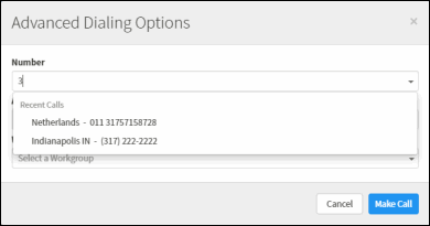 Entrez un numéro de téléphone ou sélectionnez un numéro récemment appelé dans la liste déroulante Numéro.