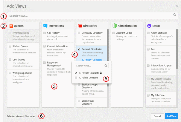 Utilisez la boîte de dialogue Ajouter une vue pour choisir les vues à afficher dans le client CIC.