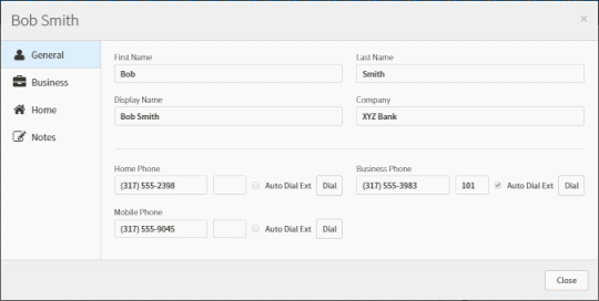Vous pouvez cliquer sur n'importe quel lien hypertexte de numéro de téléphone dans le client CIC pour appeler un contact. Les hyperliens par numéro de téléphone apparaissent dans les vues d'annuaire et dans la boîte de dialogue Propriétés du contact.