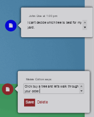 Pour afficher du texte directement sur la page Web du visiteur, cliquez sur l'icône Annotation. Vous pouvez placer l'annotation n'importe où sur la page Web. Le visiteur dispose d'une commande similaire et peut poser des questions ou répondre. Vous-même et le visiteur pouvez voir toutes les annotations effectuées sur cette page Web. |