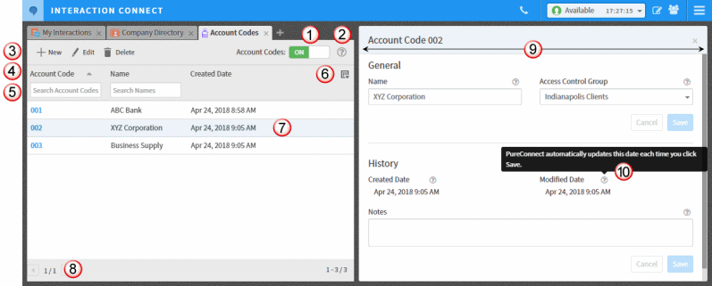 Les administrateurs peuvent créer et configurer des codes de compte dans Interaction Connect.