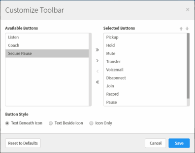 La barre d'outils de contrôle de file d'attente apparaît sur chaque vue de gestion de files d'attente (telle que Mes interactions). La configuration des boutons est spécifique à chaque vue de file d'attente ; c'est-à-dire que vous pouvez avoir une configuration de barre d'outils différente sur chaque vue de file d'attente.