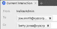 Une réponse à un email est liée à l'interaction par email entrante d'origine acheminée par ACD. Lorsque vous sélectionnez une réponse dans Mes interactions, elle apparaît dans la vue Interaction actuelle. Plus d'une interaction par email peut être associée à l'email d'origine. |