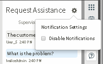 Utilisez l'icône Paramètres de notification dans la barre latérale Demande d'assistance pour activer ou désactiver les notifications d'aide. Les notifications d'assistance se produisent lorsque votre superviseur répond à votre demande d'assistance.