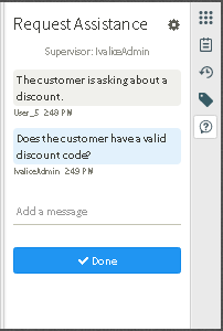 Exigences : le droit de contrôle d'interaction « Assistance » détermine si vous pouvez afficher la barre latérale de demande d'assistance. Le droit de sécurité Demander l'aide des superviseurs vous permet de demander l'assistance de votre superviseur.