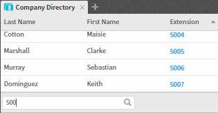 Entrez les premières lettres de l'entrée de colonne (en cas d'ordre alphabétique) ou entrez les premiers chiffres (en cas de chiffres) dans un champ de recherche de l'onglet d'annuaire.