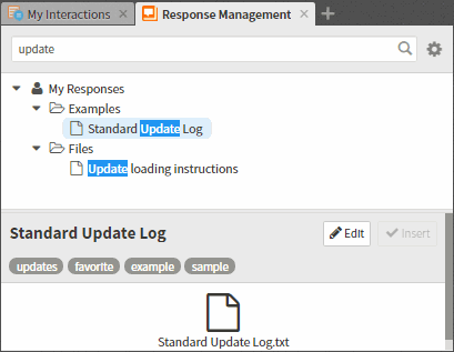 Vous pouvez localiser et utiliser n'importe quel élément de réponse personnelle ou tout élément de réponse à l'échelle du système pour lesquels vous disposez de droits dans une interaction. Vous pouvez utiliser un élément de réponse directement en l'insérant dans certains types d'interactions. Vous pouvez également l'utiliser indirectement en consultant les informations contenues dans un élément de réponse afin de résoudre un problème ou une question d'un client.