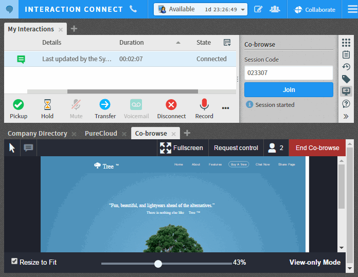 Sélectionnez une interaction et entrez un code de session dans la barre latérale c. Après avoir cliqué sur Participer, vous pouvez voir la vue des visiteurs de la page Web de votre société.