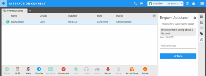Sélectionnez une interaction acheminée par ACD et demandez l'aide de votre superviseur.