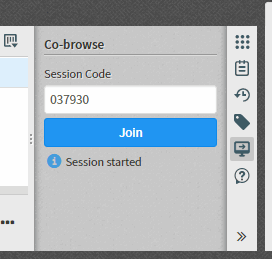 Résultat : une fois que CIC a transféré l'interaction et que l'autre agent y a répondu, l'autre agent voit le code de session dans la barre latérale de co-navigation.