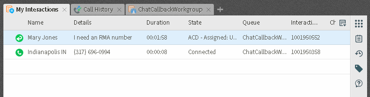 Lorsque vous répondez à une demande de rappel, son statut devient « Attribué par ACD : (nom de l'agent) », et aucun autre agent ne peut répondre à cette demande. Cependant, si l'interaction de rappel vous est transférée ou si vous y répondez alors que vous n'êtes pas membre du groupe de travail vers lequel l'interaction a été acheminée, son statut passe à Connecté.