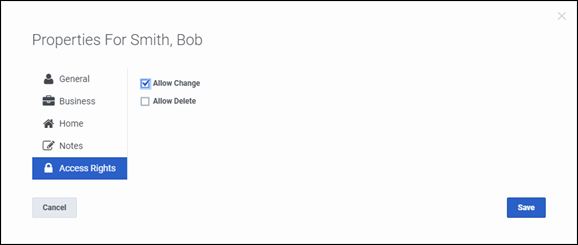 If the directory is writable and you are either the owner or have the Directory Administrator right, you can update it. However, even with sufficient permissions, Access Rights for individual contacts control whether you can change or delete a specific contact record. |
