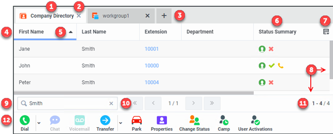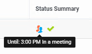 Use the default Status or the Status Summary column to determine if a contact is available to take a call. Several other status columns are available, including Status Notes and Time in Status. For more information, see Customize Columns. Tip: Point to an icon in the Status Summary column to display a tooltip that explains its meaning. It can also display the Status Notes and Until Date and Time, if available. Note: General directories contain external contacts. CIC status information is not available for external contacts. |