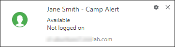 Result: This displays the Camp desktop alert with the selected person’s current status and corresponding status icon.
