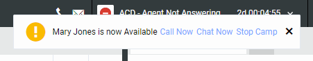 When the person’s status changes to an available type, an alert appears. To call the user, click Call Now.