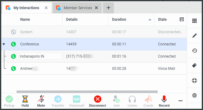 To add parties to a conference, drag a connected call and drop it on the Conference interaction.
