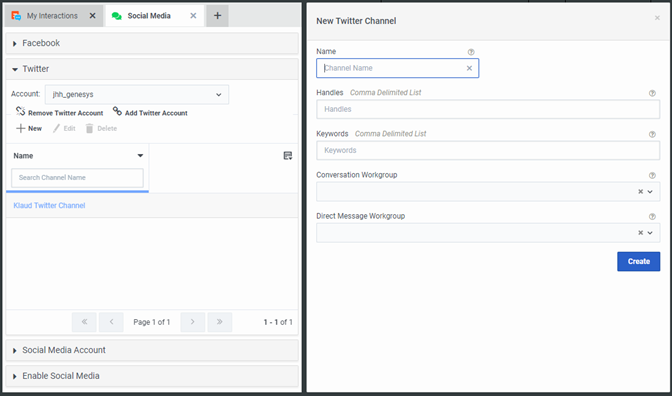 Tip: You can edit or delete the Twitter channel by selecting its label and clicking Edit or Delete in the Social Media view.