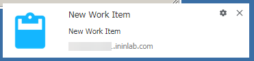 Normally, you see the alert when the work item arrives in My Interactions. However, if you are not logged onto the CIC client at the time the work item is routed to you, you see the alert the next time you log on to the CIC client if the work item is still in your queue. There is no sound associated with this alert.
