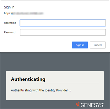 Note: This dialog box does not appear, if your CIC administrator configures your browser to enable Windows credentials to automatically pass to the CIC server. Also, the appearance of this dialog box varies according to the browser you use.