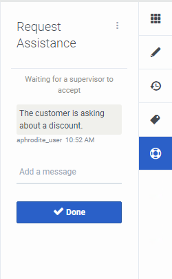 When you no longer need assistance and have finished your conversation with your supervisor, click Done.