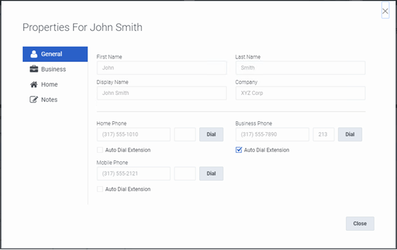 If you want to auto dial both the phone number and extension in this Properties dialog box, click the Ext. hyperlink.