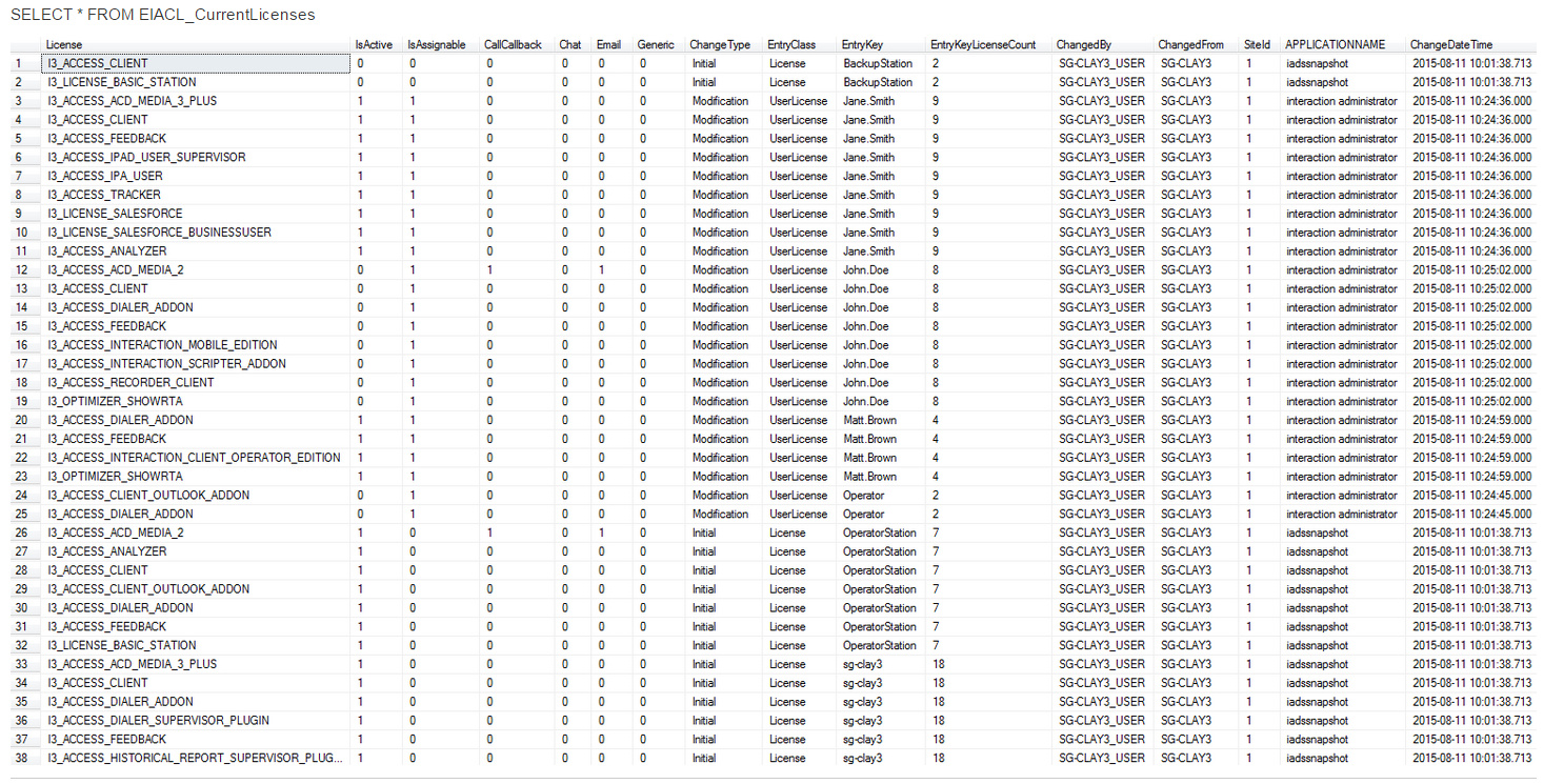 This view will always be in descending order by EntryKey and ChangeDateTime. It displays all of the changes for each entry key. The entry key will always be a user or a station.