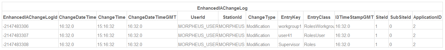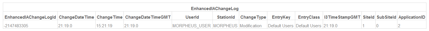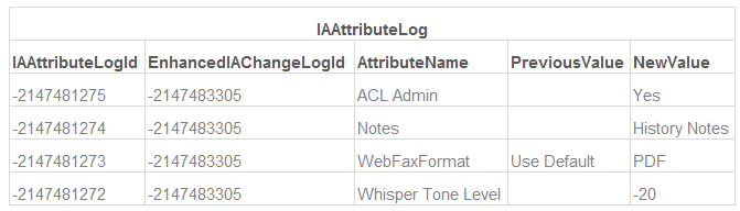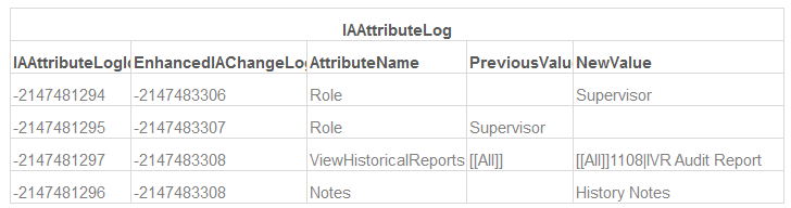 - A record in the EnhancedIAChangeLog with a ChangeType of Addition denotes that a user was added to the system; there are no attribute records tied to that entry.