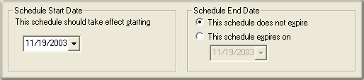 This option indicates that the schedule should not expire, meaning that once the start date is reached, settings on the schedule tabs should always be evaluated.