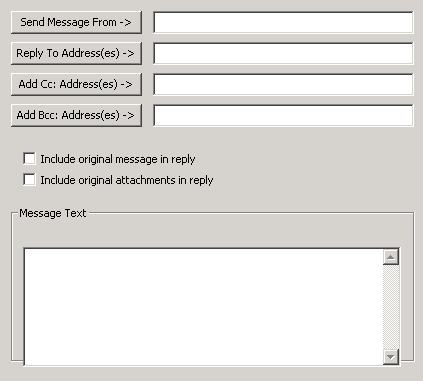 If you choose to include the original text in the message body by selecting the Include original message in reply check box, the text you enter into the Message Text field will be added to the body of the message.