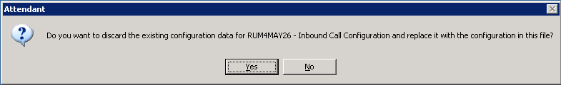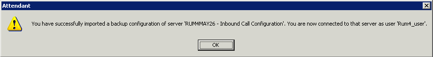 Press Yes to replace the loaded configuration with the contents of the file, or press No to cancel. Remember – loading a configuration has no effect on the server until it is published. Attendant displays a dialog to confirm the backup configuration was inserted: