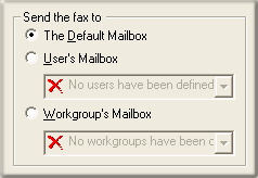 These options determine whether the FAX is received and sent to the default mailbox for fax recipients (as configured in Interaction Administrator), to a specific user, or to the mailbox shared by a workgroup.