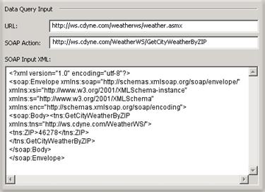 a Body element that contains call and response information. In the example above, the zip code (46278) is passed in the ZIP element. To reference a call attribute in the SOAP Input XML field, the Body element can contain references to call attributes in the form: $(AttributeName)