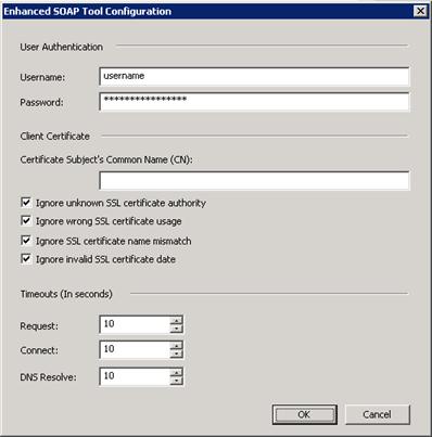 Use enhanced SOAP request tool (with SSL and user authentication support) check box
