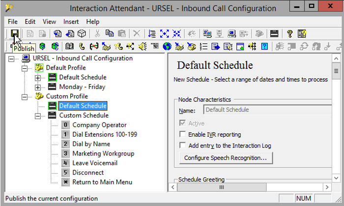 Attendant displays messages in a status bar at the bottom of the window. Help text and informational messages appear in the status bar.