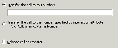 Select this radio button to direct the call to the destination number specified in the 'Eic_AttDynamicExternalNumber' interaction attribute. See Set Attribute for details on how to modify an interaction attribute.