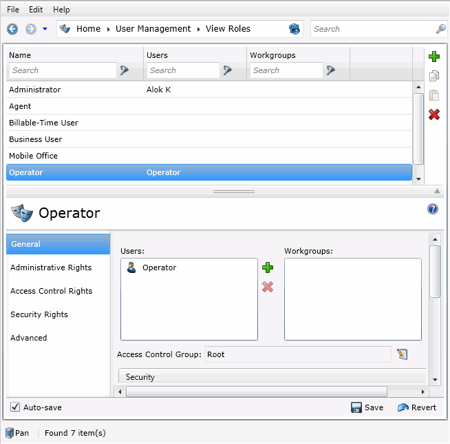 The details of the selected role are displayed in the details view.