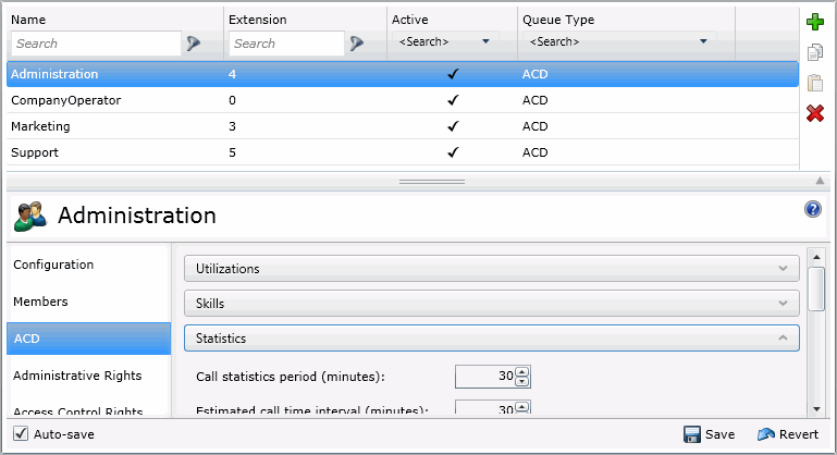 Actions associated with the items can be performed using the buttons displayed to the right of the master view. The buttons include add, copy, paste and delete.