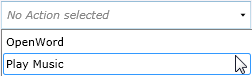 To specify a specific action to start when an ACD interaction enters an alerting state for members of this workgroup, select the action in Alerting action. You can filter the list by typing in the drop-down box. If there are no previously actions, there are no entries in list of available items. When an action is not specified, a message is displayed: