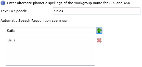 - Type the TTS phonetic spelling for the workgroup in the Text to Speech field: