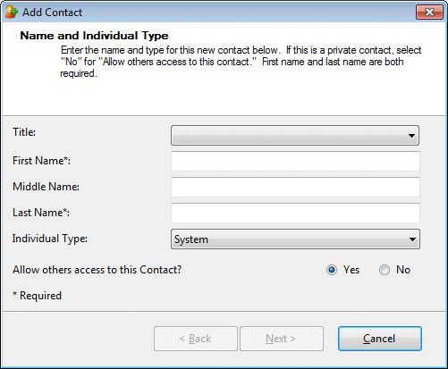 Enter the contact’s first, middle, and last names in the appropriate text boxes. |